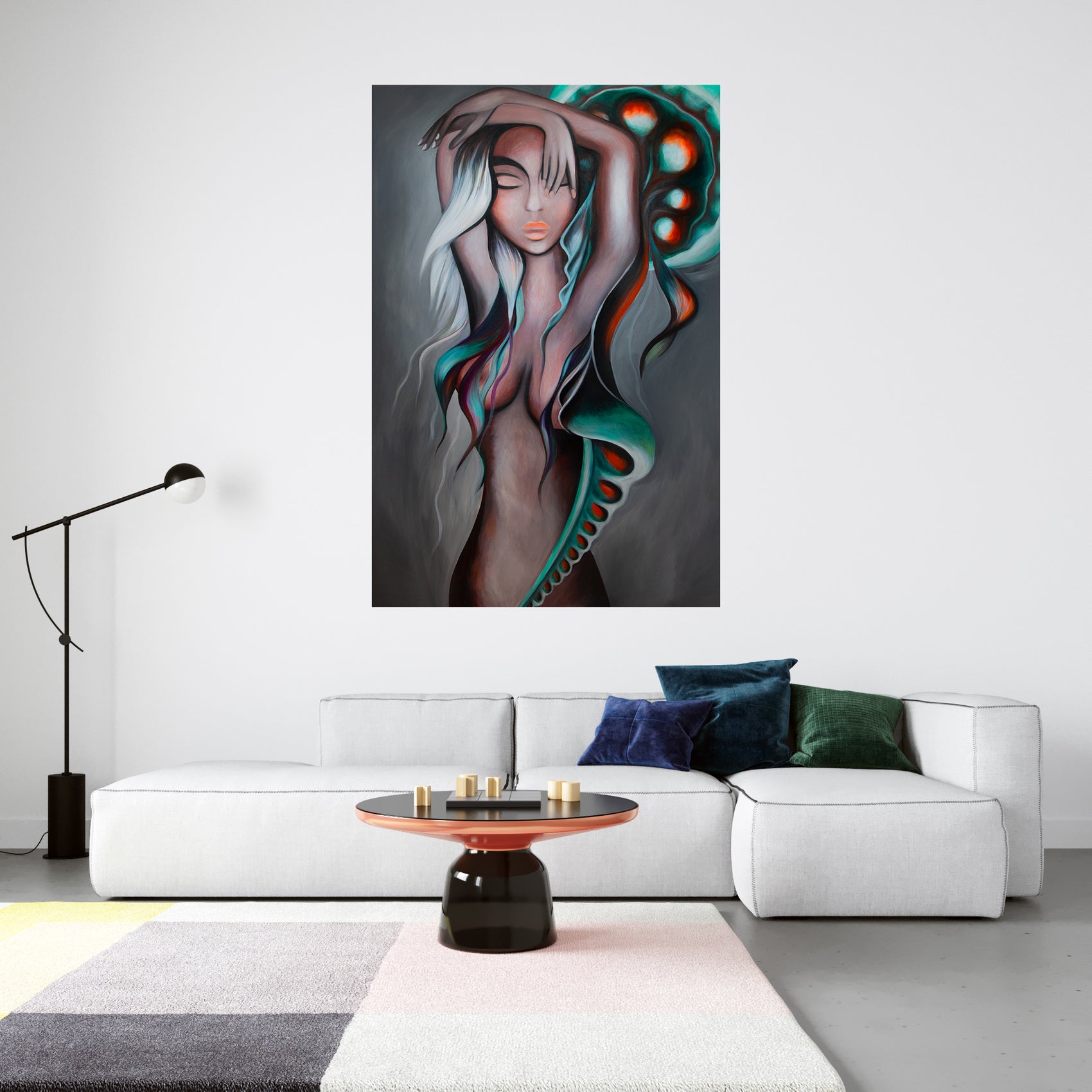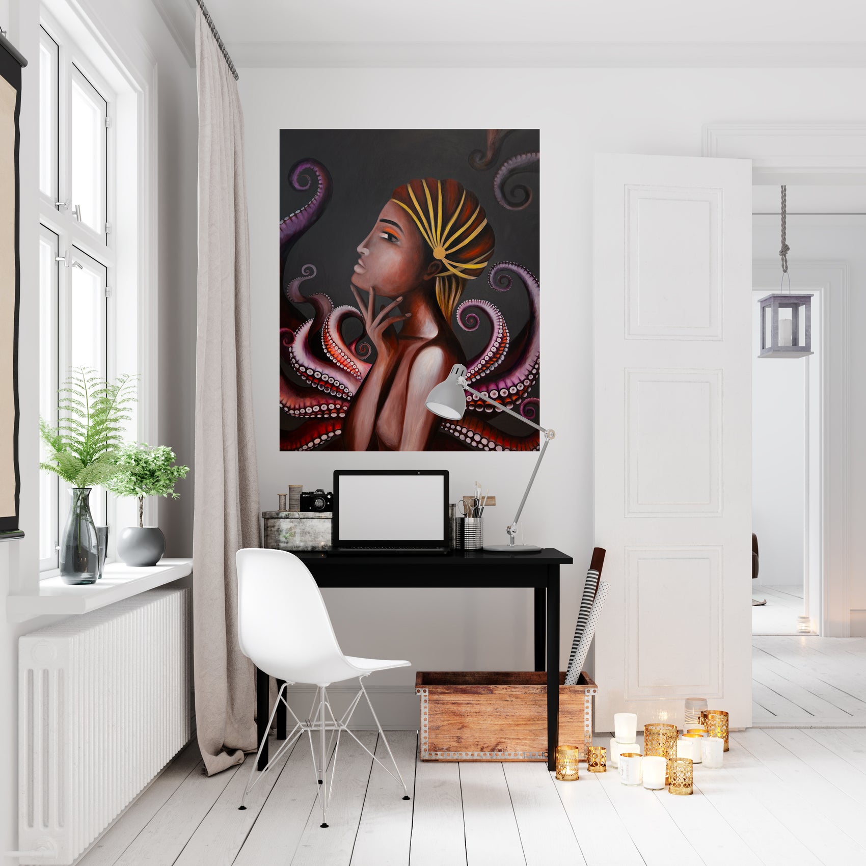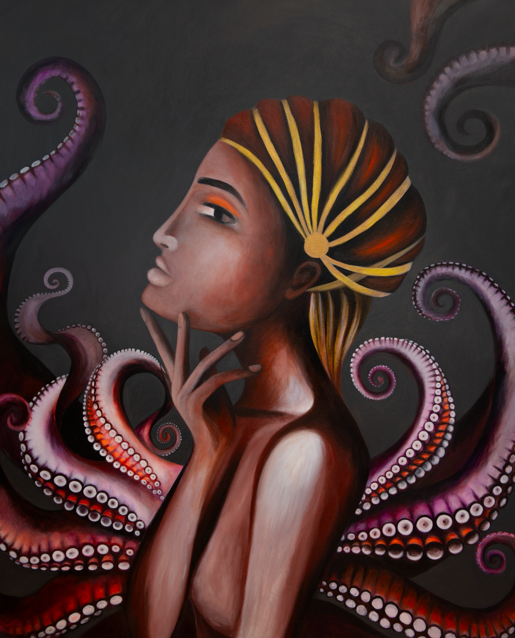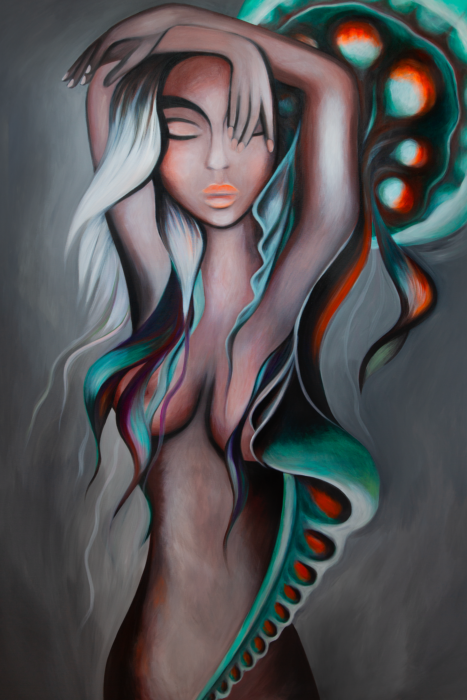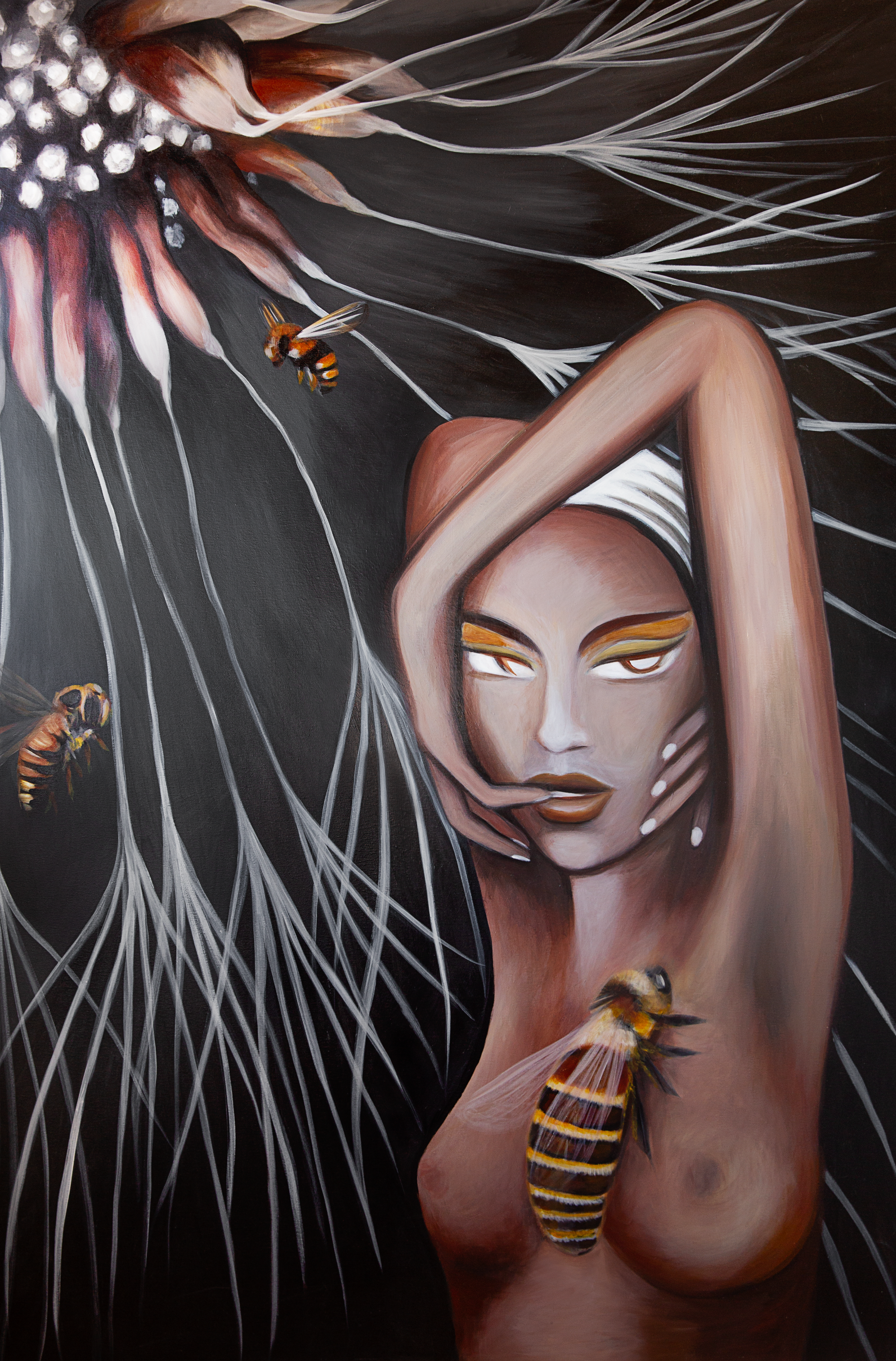 When I spend hours on a painting and suddenly realize its not what I had in mind, it takes me seconds to erase it all and start all over. This painting had many faces and arms before it was finished. Practising patience is the key